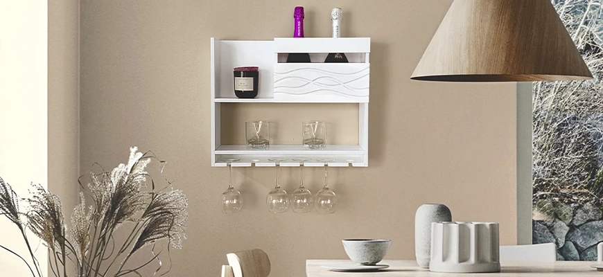Особливо зручними є винні полички для пляшок та келихів, які поєднують кілька функцій в одному виробі. Вони дозволяють зберігати не лише пляшки, а й келихи, завдяки чому все необхідне для дегустації завжди під рукою. Таке рішення ідеально підходить для вітальні, кухні або обідньої зони.